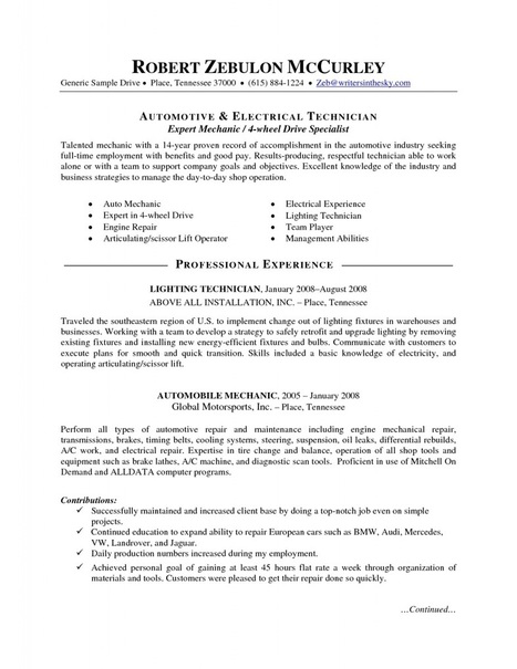 Auto Mechanic Resume Sample Jobcase