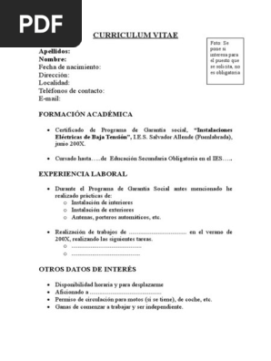 Modelo De Curriculum Vitae Basico Para Descargar Gratis