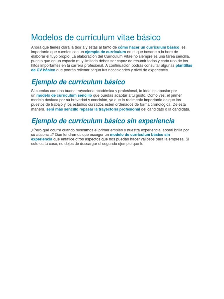 Modelos De Curriculum Vitae Basico