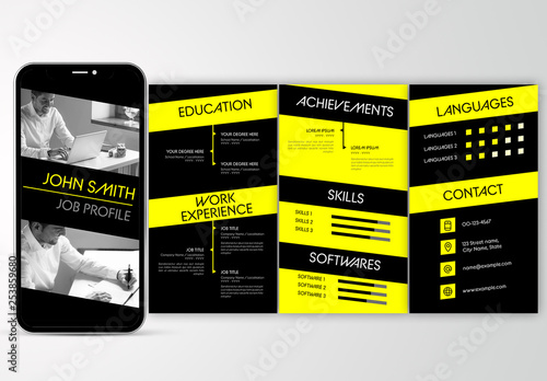 Check out this resume template with an undeniably confident yellow and black finish. Make one color dominant one secondary and use the third to place emphasis. Thats why your resume must stand out. All artwork and text is fully customisable.