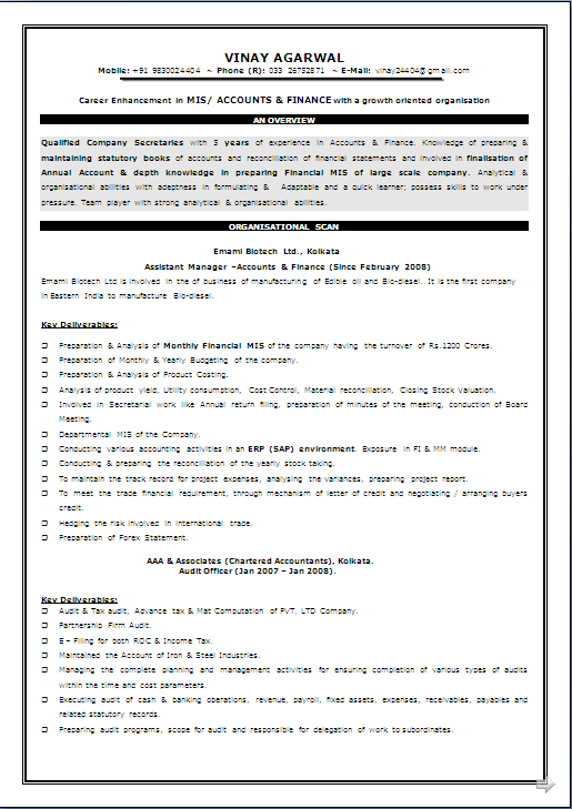 Indian Chartered Accountant Resume Sample 2 Accountant Resume