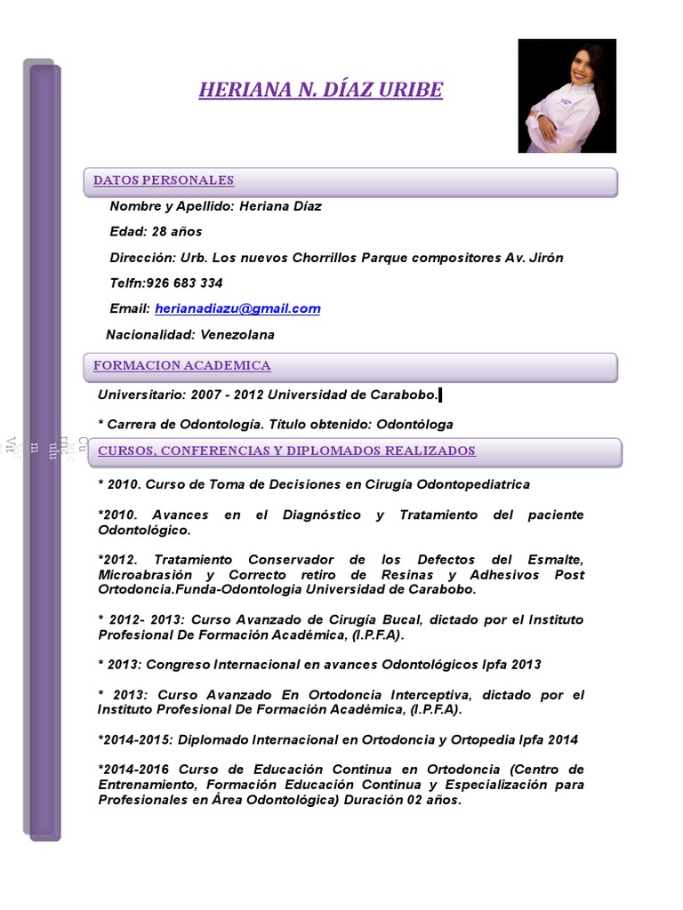 Curriculum Vitae Heriana Diaz Asistente Dentalll Odontologia