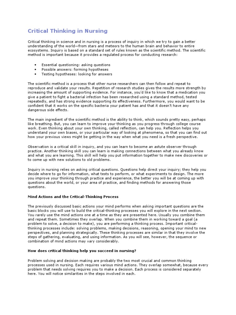 Critical Thinking In Nursing Scientific Method Brainstorming
