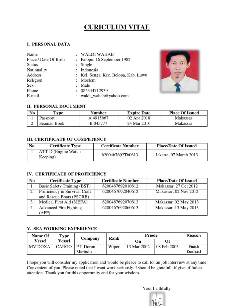 Contoh Curriculum Vitae Pelaut Doc
