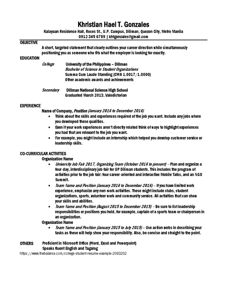 Example Ng Resume Sa Tagalog History A Former Terms Ilang