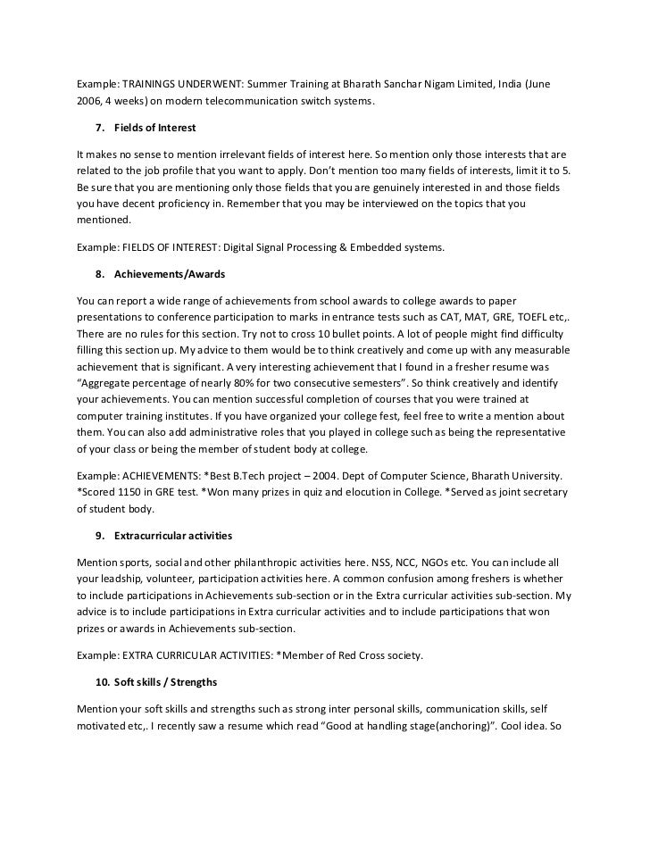 Extra Curricular Activities In Resume Extra Curricular Activities