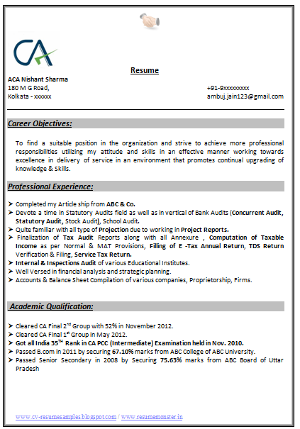 Accountant Resume Format In Word In India
