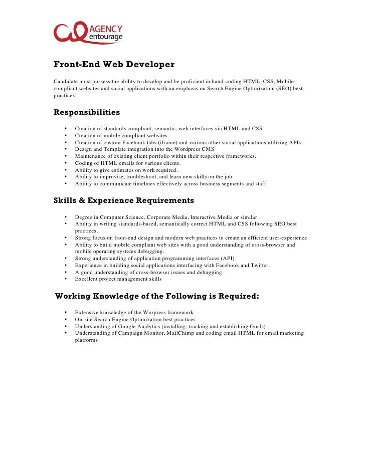 Broadly and deeply knowledgeable in a wide variety of computer languages as well as the principles and techniques of website construction and maintenance. Resume resume examples developer resume front end web developer front end web developers are hired to enhance user experience in digital environment. Add an extra section to your web developer resume to showcase all these gold stars. Front end web developer.