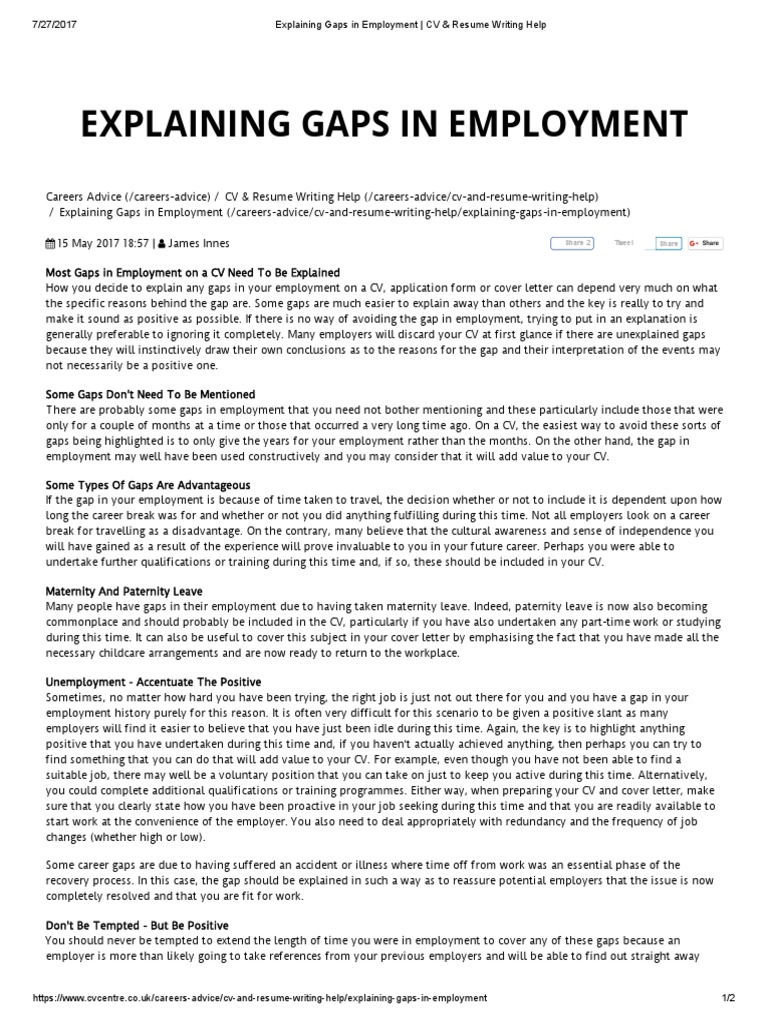 Explaining Gaps In Employment Cv Resume Writing Help Resume