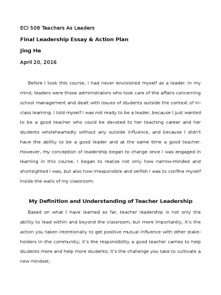 Eci 508 Final Leadership Essay And Action Plan By Jing He