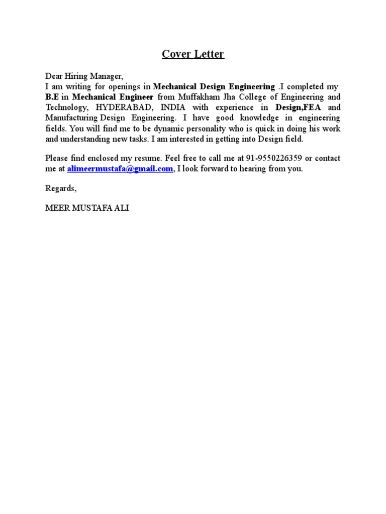 Cover Letter Academia Mechanical Engineering