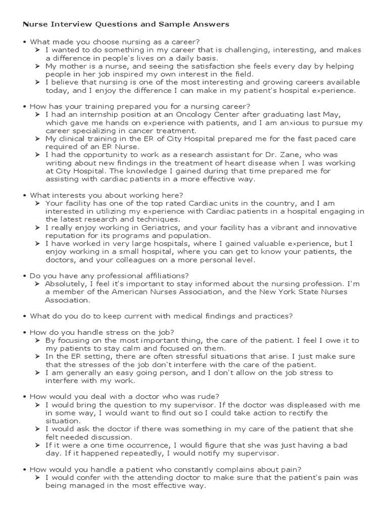 Nurse Interview Questions And Sample Answers Nursing Hospital