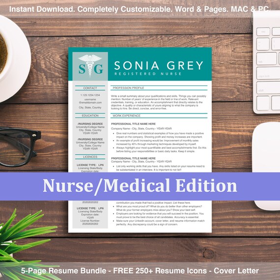 Nursing Resume Template Word Pages Rn Nurse Resume Etsy