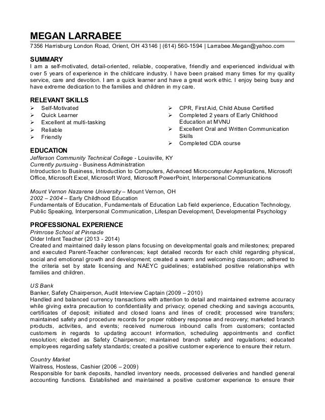 Child Care Provider Resume Template For Microsoft Word Livecareer