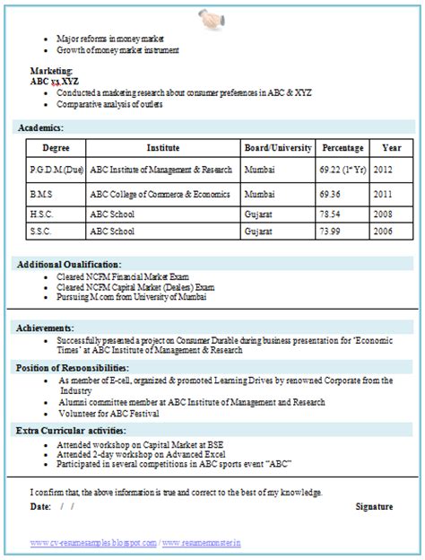 Bca Fresher Resume Sample Format In Word Doc Pdf Siddhesh Lad