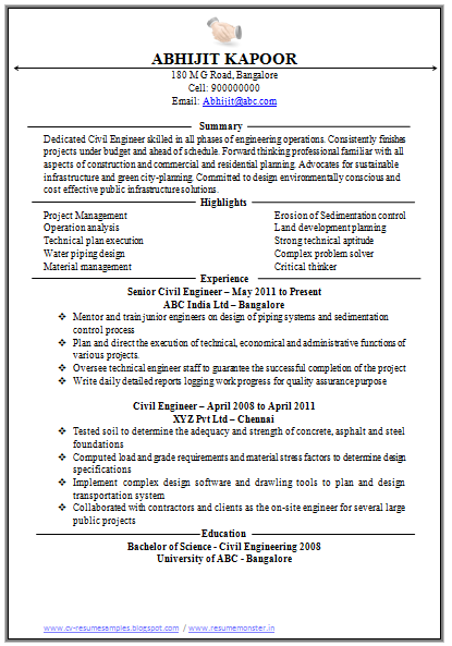 Resume Format For Planning Engineer