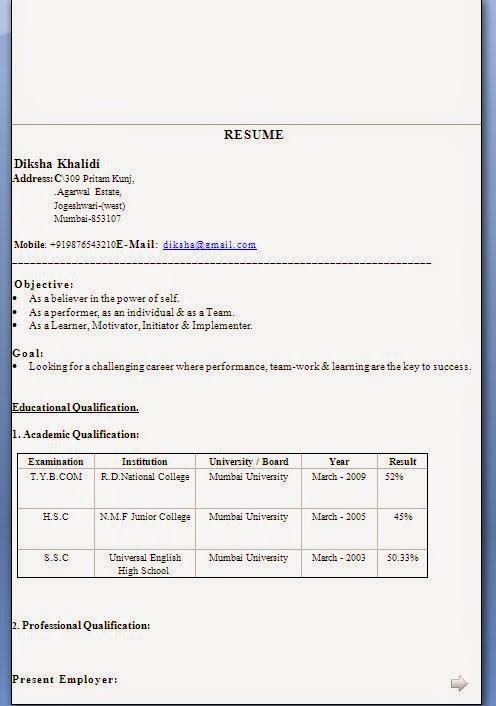 Sample Resume Format Pdf India Resume Resume Sample 6509