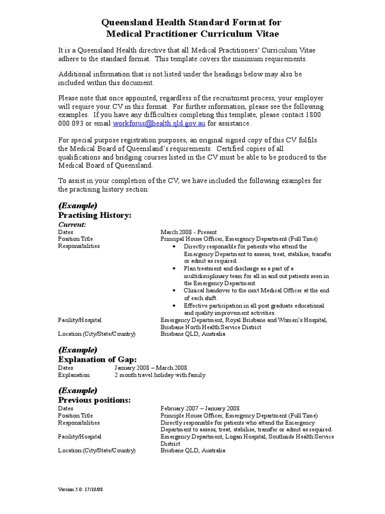 Standard Format For Medical Practitioner Cv Updated Physician