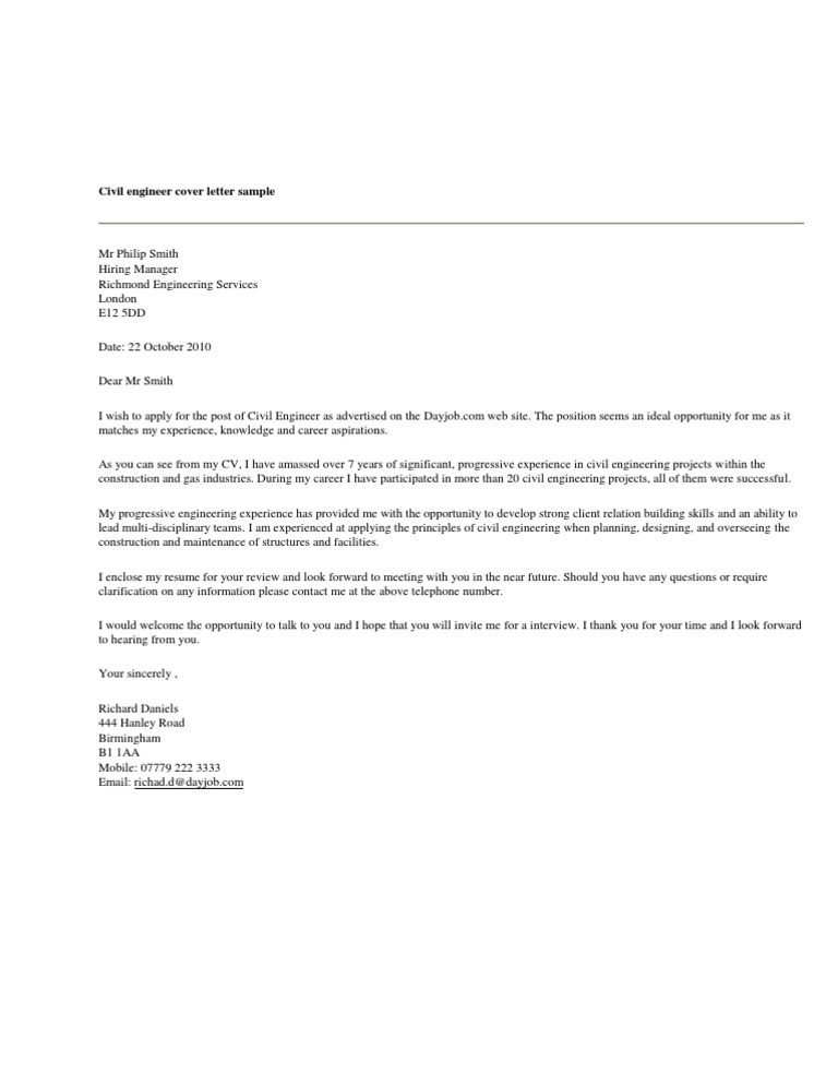 Cover Letter Example For Civil Engineering Jobs Need Help With