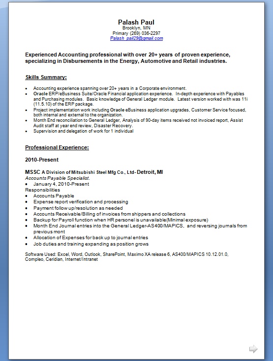 Accounts Payable Specialist Sample Resume Format In Word Free
