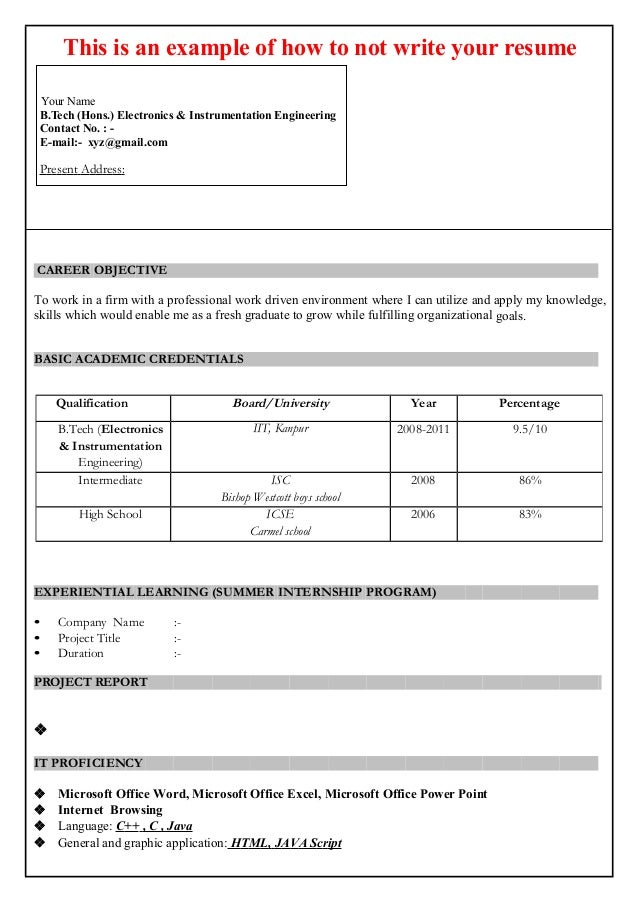 First Year Student Sample Resume Free Download